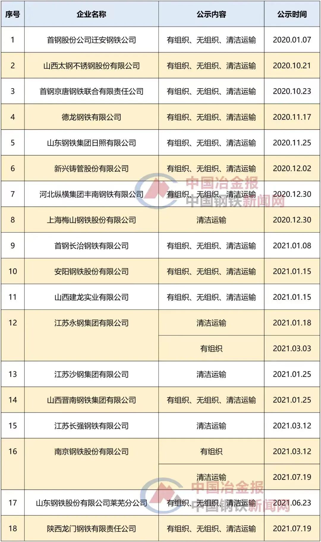 已公示企業(yè)名單及公示內(nèi)容整理如下——
