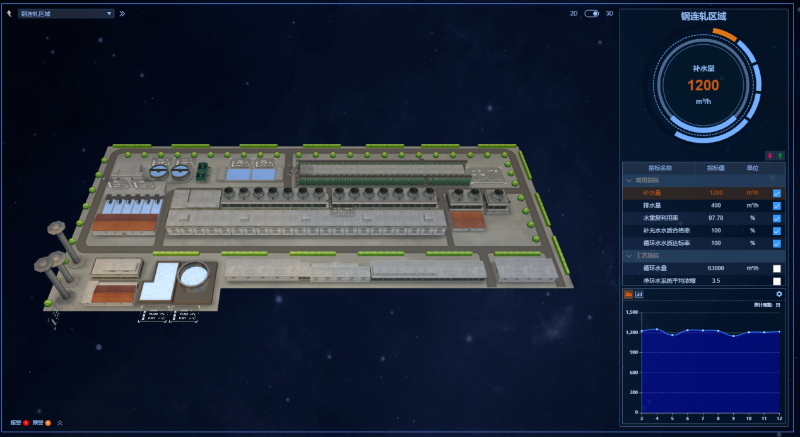 圖6 鋼鐵企業(yè)節(jié)水減排智慧管控平臺(tái)3D導(dǎo)航界面