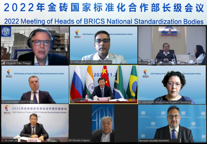 11月24日,2022年金磚國家標(biāo)準(zhǔn)化合作部長級(jí)會(huì)議以視頻方式召開。市場監(jiān)管總局副局長、標(biāo)準(zhǔn)委主任田世宏,聯(lián)合國工業(yè)發(fā)展組織公平生產(chǎn)、可持續(xù)標(biāo)準(zhǔn)與貿(mào)易司司長博納爾多·薩密恩多,巴西國家標(biāo)準(zhǔn)化機(jī)構(gòu)總干事理查德·弗拉高索,俄羅斯聯(lián)邦技術(shù)規(guī)范與計(jì)量署署長安東·沙拉耶夫,南非標(biāo)準(zhǔn)局局長喬迪·舒爾茨,印度標(biāo)準(zhǔn)局標(biāo)準(zhǔn)化司副司長拉杰夫·夏爾馬等共同出席會(huì)議。