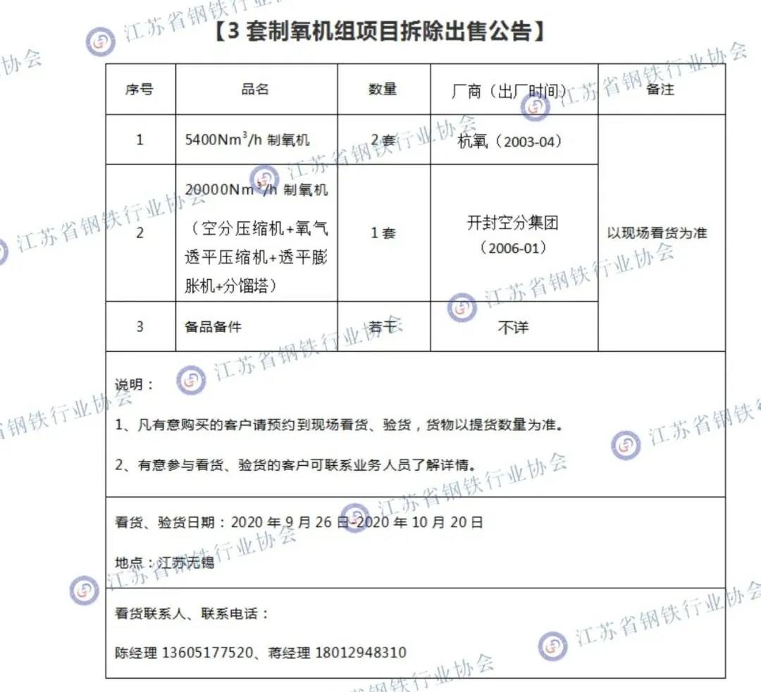 關(guān)于制氧機、穿孔機設(shè)備拆除出售公告