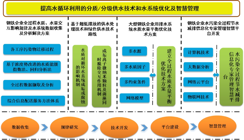 目前我國鋼鐵?業(yè)?處理存在的主要問題如下:①工藝流程長;②用排水量大;③廢水排放節(jié)點多且成份復雜;④全廠水質(zhì)水量難平衡;⑤水系統(tǒng)精細化科學管理及智能化管理水平還有待完善。