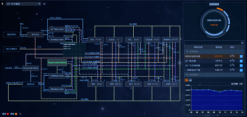 實時追蹤水足跡,以水流監(jiān)控圖的形式對水系統(tǒng)的運行工況進行監(jiān)控,顯示歷史和實時的運行參數(shù),從而判定各指標是否符合生產(chǎn)工藝要求并進行即時分析及預警報警,實現(xiàn)了水資源的智慧化和可視化管理。