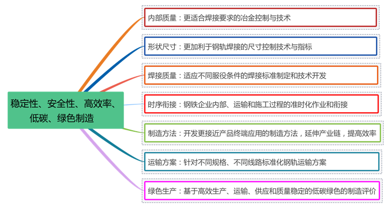 主要不足:鋼軌實(shí)物質(zhì)量如何更好滿足直供線路鋪設(shè)和長(zhǎng)壽化服役等要求。如:持續(xù)提升鋼軌穩(wěn)定服役的氫含量控制;鋼軌硫含量對(duì)接頭性能影響情況;存有高速鋼軌高低點(diǎn)差大于0.30mm現(xiàn)象;不同鋼種鋼軌不能混焊和焊接接頭合格率不穩(wěn)定;未形成合金鋼軌成熟穩(wěn)定的焊接工藝等。