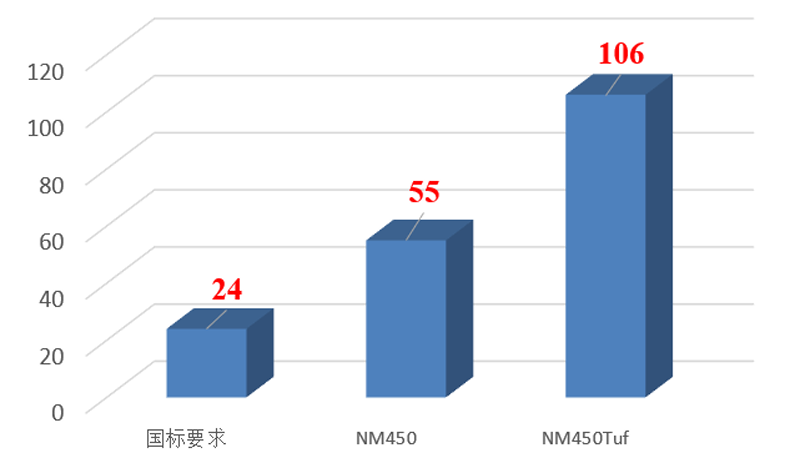 2、依托超潔凈鋼冶煉技術(shù),成功開(kāi)發(fā)出系列高韌性止裂耐磨鋼,NM450Tuf產(chǎn)品-20℃沖擊功可達(dá)110J,低溫韌性為同級(jí)別耐磨鋼2倍以上,超過(guò)國(guó)標(biāo)要求4倍,可在-60℃環(huán)境下服役,耐磨性和使用壽命提升一倍。