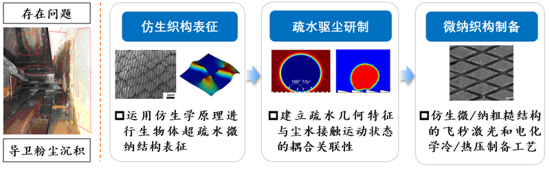 圖4 關鍵技術1:導衛(wèi)板疏水疏塵表面的仿生微納織構構造技術