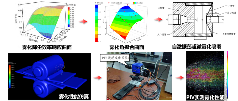 “十二五”期間,隨著國家對鋼鐵企業(yè)提出更嚴苛的環(huán)保要求,國內鋼鐵企業(yè)開始研發(fā)新一代熱軋除塵技術,進一步提高鋼鐵工業(yè)全流程清潔生產水平。以美國斯普瑞、德國萊克勒公司和國內噴霧技術供應商江蘇博際為代表,在常溫噴射和霧化降塵技術方面具有領先水平。但在解決高溫環(huán)境下熱軋除塵效率低下的問題上,并沒有成熟可靠的理論方法和技術手段。針對該問題,項目團隊于2014年開始利用水射流自激振蕩脈沖特性開展超微霧化機理研究,開發(fā)雙腔室超微霧化噴嘴,建立霧化噴射性能試驗臺,優(yōu)化多相流體射流噴射性能,應用于熱軋霧化降塵,有效提高降塵效率。該項研究獲得當年國家自然科學基金項目(51405352)支持,在機械工程學報等國內外權威期刊發(fā)表SCI/EI論文6篇,授權發(fā)明專利6項,相關成果獲2019年武漢鋼鐵有限公司科技成果一等獎。