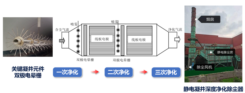 圖12 關鍵技術3:水霧+靜電凝并+節(jié)電復合除塵深度凈化技術