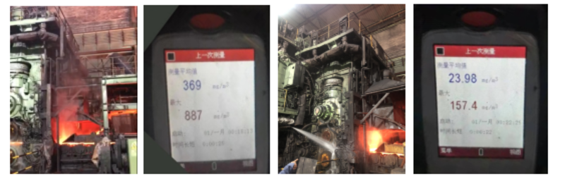 與國內外同類技術相比,本項成果大幅提高熱軋產線霧化降塵效率至93.5%,深度凈化除塵效率達97%,粉塵排放濃度降至4.36mg/m3,實現了熱軋生產粉塵可控超低排放。從工藝源頭到產線末端全面深度凈化熱軋生產環(huán)境,促進了熱軋行業(yè)綠色制造技術進步。